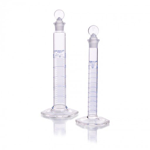 Probeta, P.C., “B”, (Mezcladora) Base Hex. Vidrio, Escala Azul, Tapón Vidrio 500 Ml